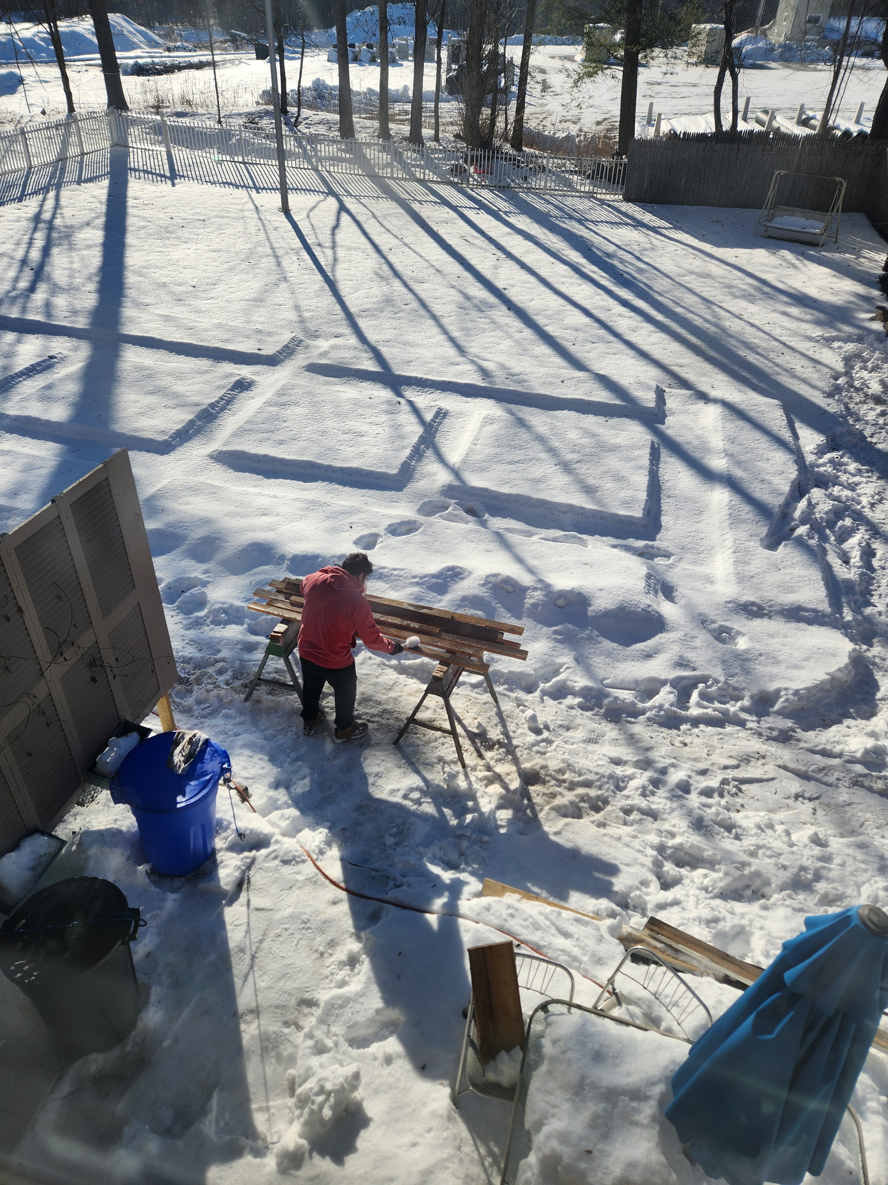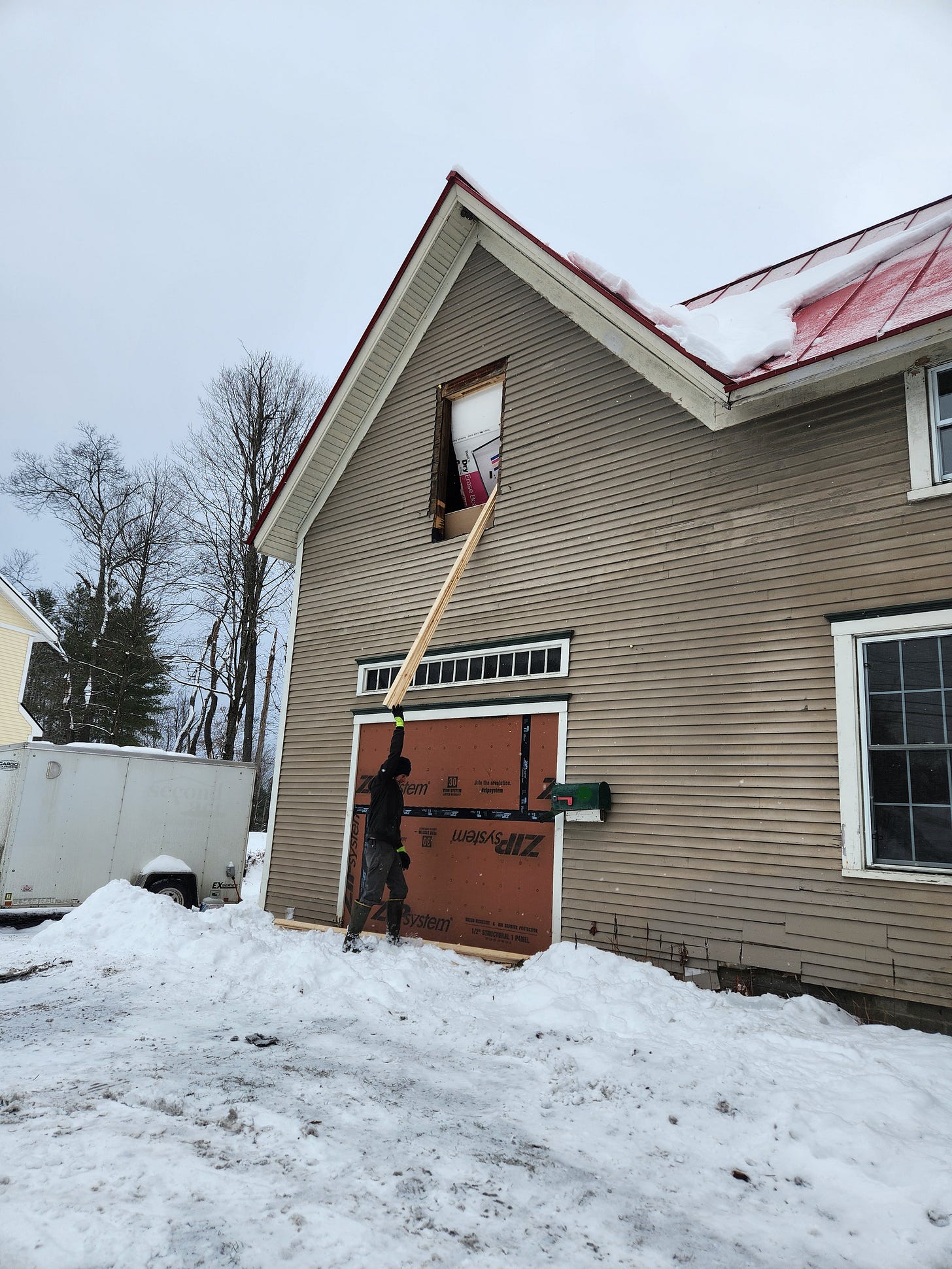 There were a few pieces of the original wood which we removed and saved for window trim and other, more decorative uses. Cleaning off a century of dust was an essential step to preserving the wood and making the pieces usable for our space. Here’s Mauricio working hard with a scrub brush in the snow.