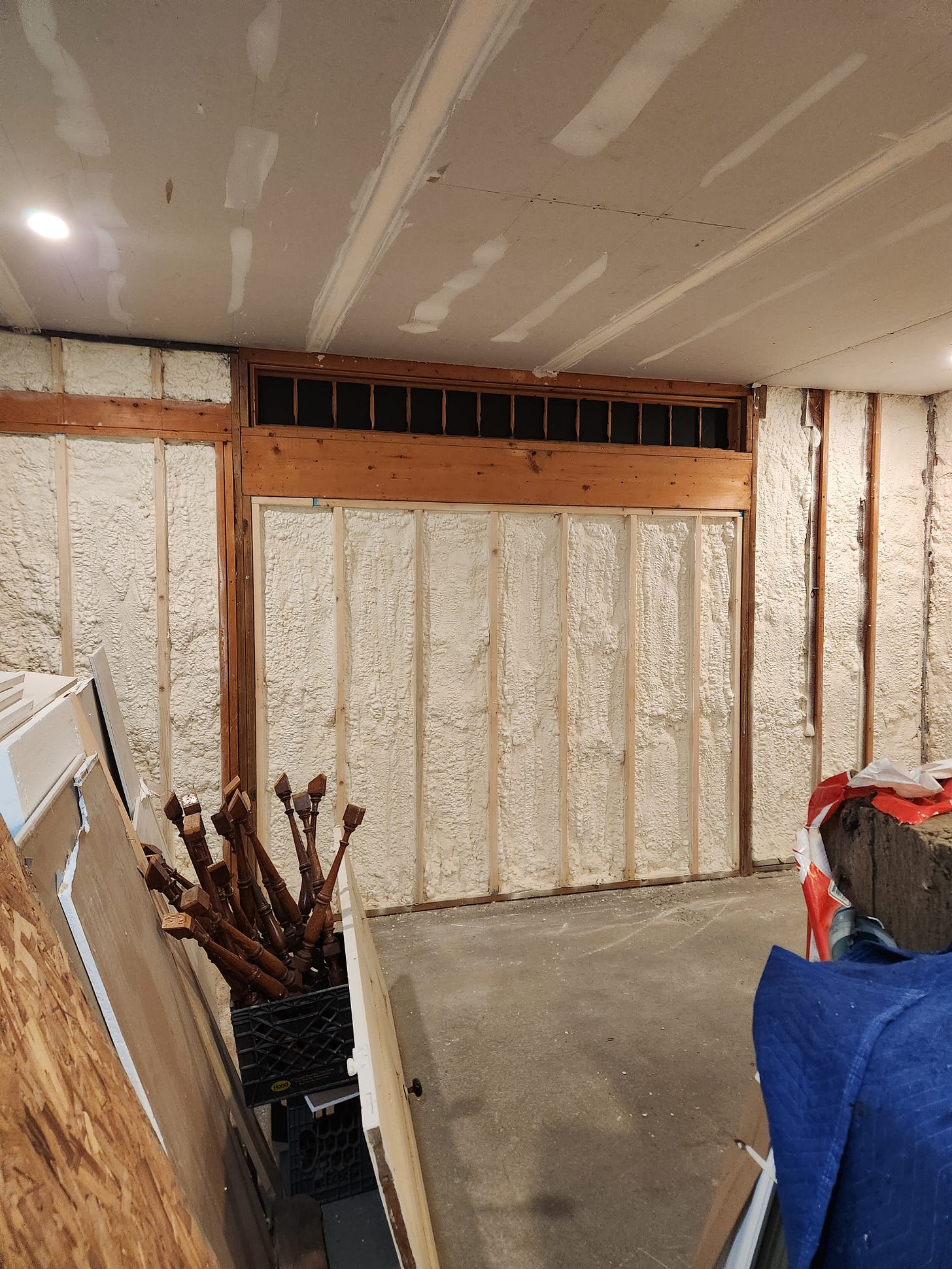 If you recall from our October update, we began with a just single layer of wooden beams as the only thing separating our space from the outside world. This recent construction began with framing in real walls and spray foam insulation. As much as we miss the beautiful old wood, protection from the elements is essential now that the outside temperature stays below freezing for weeks at a time.